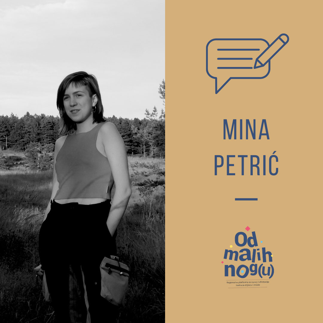 Mina Petrić (25.2.1997. Novi Sad) studentkinja je četvrte godine odseka za dramaturgiju Akademije umetnosti u Novom Sadu. Njena drama „Pad Avale“ imala je svoje javno čitanje na Sterijinom pozorju i dvojezično (srpski i engleski) je štampana u publikaciji Festivala studentskog pozorišta, dok je monodrama „Betmen nema granica“ izvedena je na Festivalu monodrame za decu. Pročitaj više