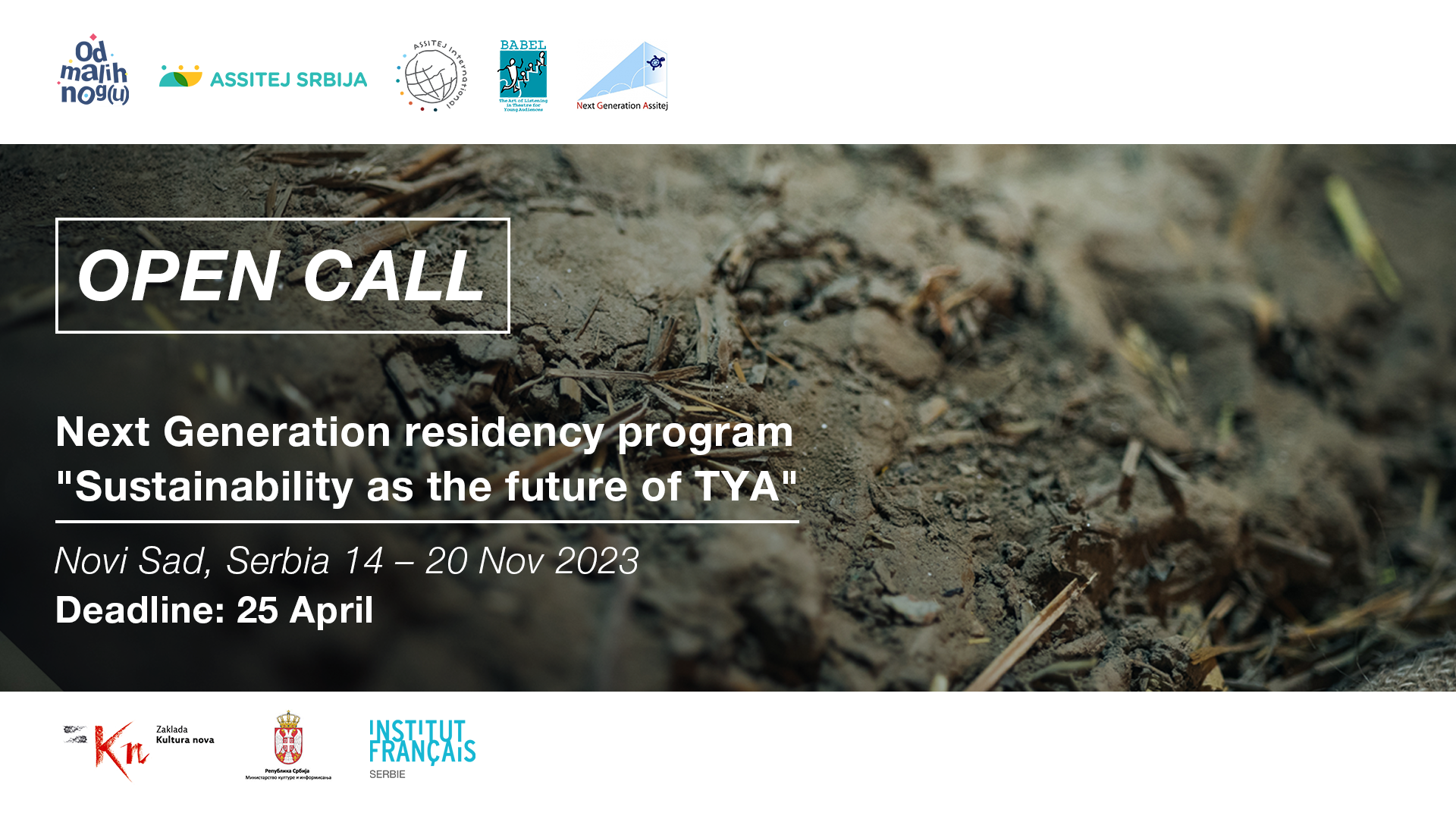 ASSITEJ Serbia and regional platform From the First Step invites 13 artists (actors, dancers, directors, scenographers, critics, producers, researchers, pedagogues, etc.) from all around the world to attend the Next Generation program, which will be the prologue of the Assitej Artistic Gathering “Turning point” (20 – 24 November 2023).