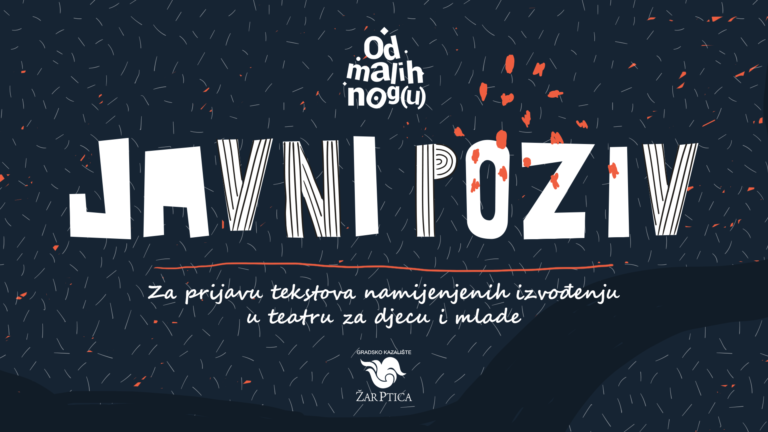 PLATFORMA OD MALIH NOG(U) IN MESTNO GLEDALIŠČE ŽAR PTICA IZ ZAGREBA OBJAVLJATA JAVNI POZIV ZA NOVA BESEDILA AVTORJEV IZ REGIJE NAMENJENEGA GLEDALIŠKIM PREDSTAVAM ZA OTROKE IN MLADE.
